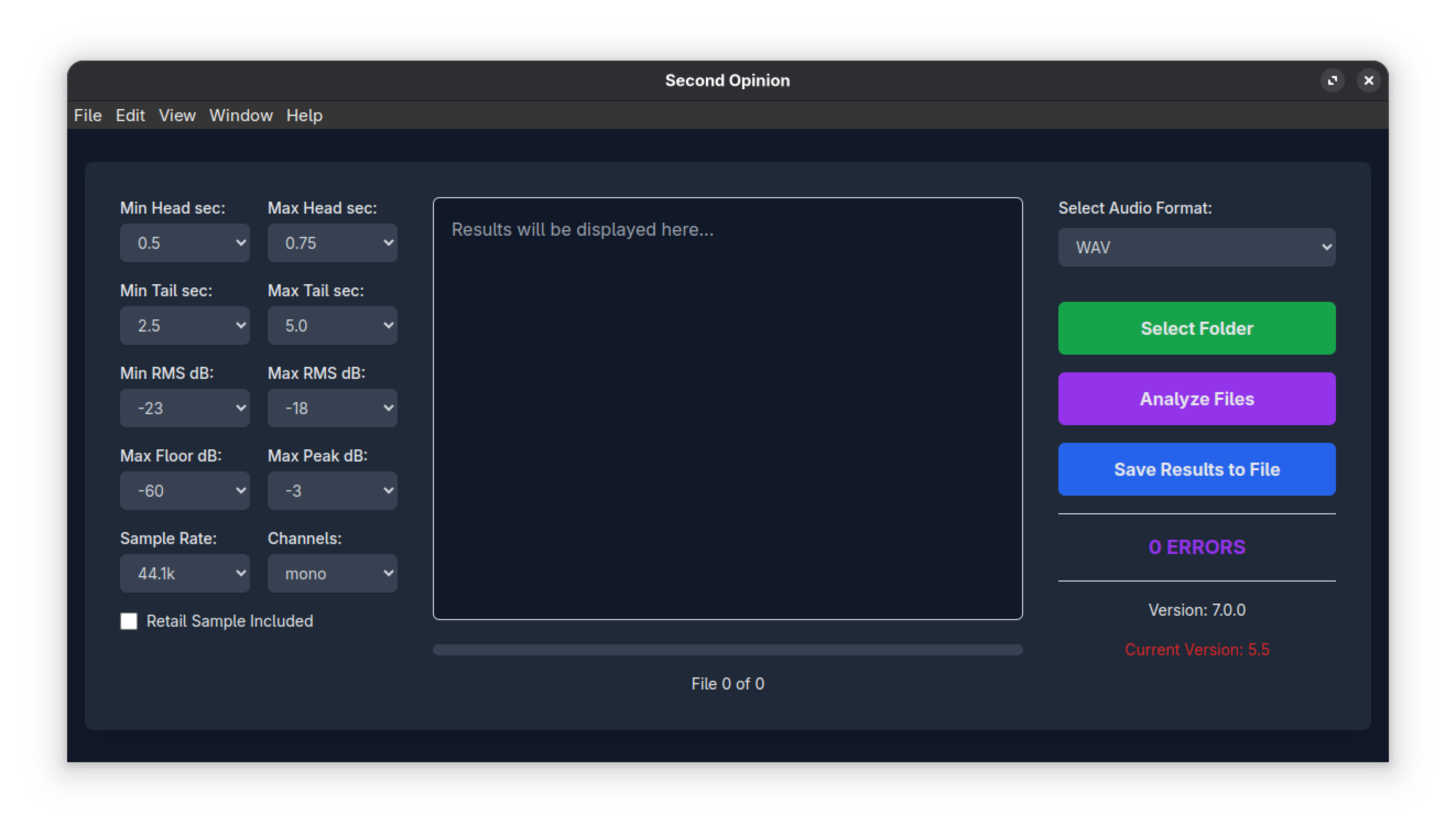 This program is meant to be run once you have mastered your audio but before you send it off for publication. It is not meant to be used in place of an actual engineer. As it’s name implies, this program is meant to give you a “second opinion” about the state of your audio files.